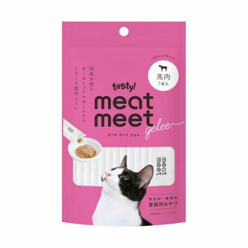 【内容量】10g×7本 【原材料】馬肉、寒天粉、こんにゃく粉、脱脂ヤギミルク 【成 分】粗蛋白8.5%以上、粗脂肪0.8%以上、粗繊維0.1%未満、水分89.4%以下、粗灰分0.2%以下、 カロリー:4.0cal/1本 【製造国】日本