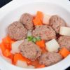 エゾシカミートボールをじゃがいも、にんじんと一緒にトマトスープで煮込みました。