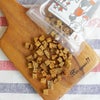 シンプルな鮭100%のおやつ。大きさはサイコロ位。与えやすく食べやすいおやつです。
