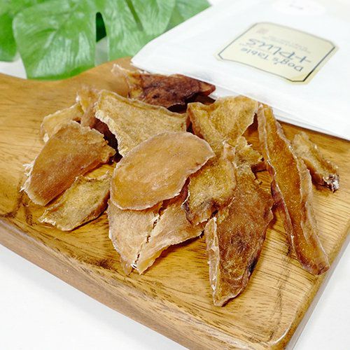 漁獲後、骨と余分な脂を取り除き新鮮な状態で水洗いしているので、臭みはありません。 また、しっかりとドライ加工しているので、噛み応えもたっぷり♪ 鮫肉は高たんぱく・低脂肪なヘルシー食材ですので、カロリーが気になる子にも与えやすいおやつです。