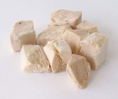栄養そのままで、お湯で戻すと生肉をボイルしたような香りと食感が楽しめます。 おやつやフードのトッピング、手作りご飯の具材としてお勧めです。