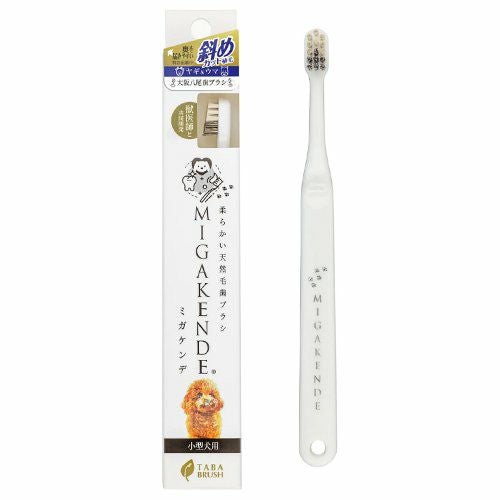 「MIGAKENDE」は獣医師と共同開発を行い、誕生しました。 高級な化粧筆にも使われている極細の天然毛を使用し、熟練の職人が1つ1つ丁寧に植毛しています。 ナイロン毛を使用した歯ブラシと比べ、毛がとても柔らかく、刺激が少ないのが特徴。 優しくブラッシングすることで歯や歯茎を傷つけることなく汚れを落とし、心地良さを与えます。 また、歯磨き中に抜けた毛を飲み込んでしまっても、天然毛だから安心安全。 小型ヘッドを採用しているので超小型・小型・中型のわんちゃんにおすすめです。