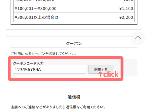 - クーポンコードを入力