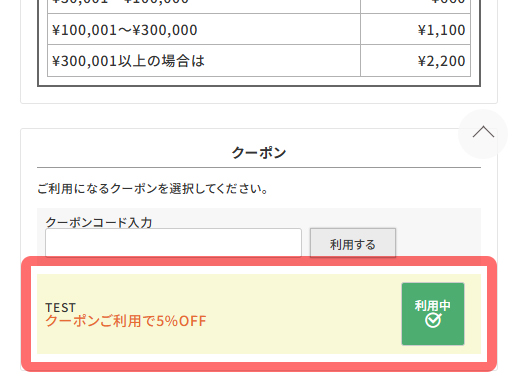 - クーポンの内容が表示され、「利用中」と表示されます。